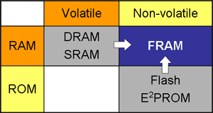 FeRAM (Ferroelectric Random Access Memory) is a "non-volatile" "random access" memory, which uses ferroelectric film as a capacitor for storing data.